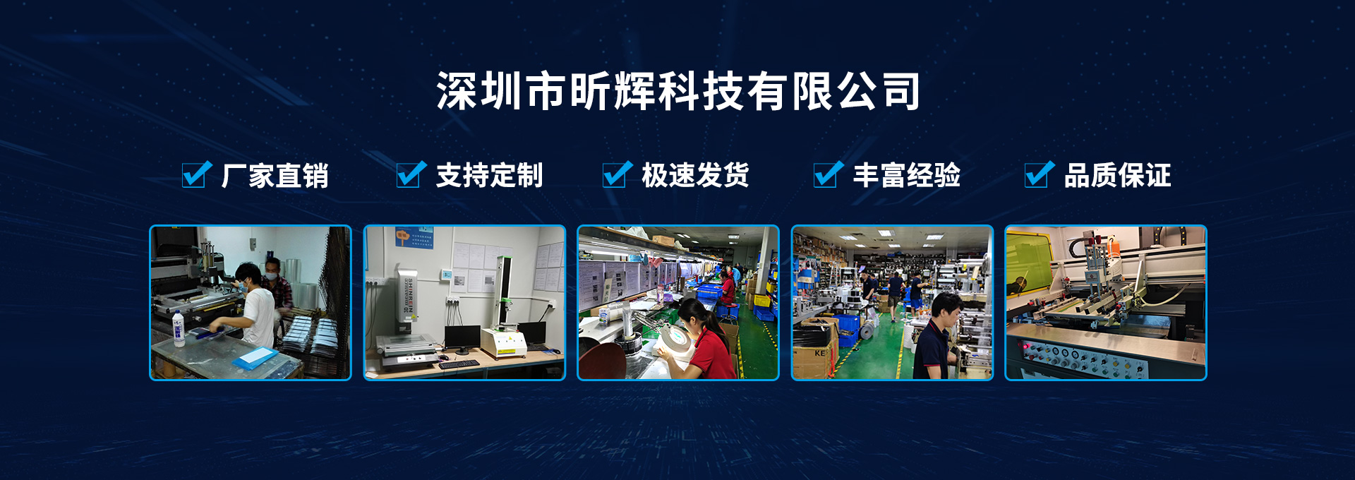 深圳市昕輝科技有限公司成立于2010年11 月,由廈門昕輝電子有限公司搬遷而來,位于中國深圳市坪山新區(qū),地理位置優(yōu)越。擁有16年的生產(chǎn)管理經(jīng)驗(yàn),是一家集生產(chǎn)、銷售、設(shè)計(jì)于一體的生產(chǎn)型制造商。主要生產(chǎn)FPC/PCB/EL/LED薄膜開關(guān)、觸摸按鍵、薄膜按鍵、薄膜電路、觸摸電路、汽車重力傳感器、薄膜壓力傳感器、EMS腹部貼紙、EMS足部按摩器、EMS按摩器,EL發(fā)光酒標(biāo)、EL發(fā)光標(biāo)志、LED/EL背光、鍍金/鍍鎳、鍋?zhàn)衅⒔饘購椘⒁壕э@示器、觸摸屏等產(chǎn)品。